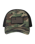 100% cotton, washed chino twill crown and bill; 6-panel, unstructured, low-profile; Precurved bill; NO-Sweat moisture-wicking sweatband; Hook and loop closure; Headset-friendly with no top button; Embroidered removeable flag patch;