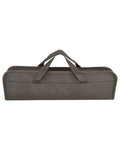 • Case features zipper closure, front open pocket, and polyester web handles (measuring approx 6.5"l x 1"w)